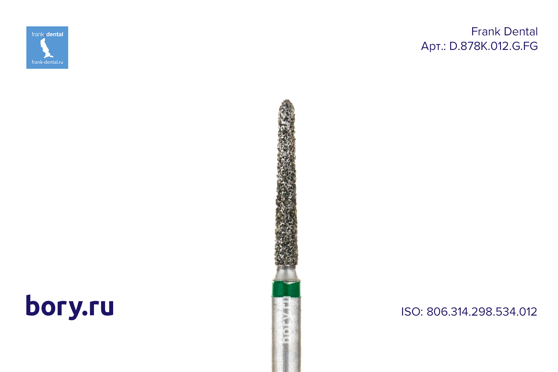 Бор алмазный зеленый Frank Dental типа FG - D.878K.012.G.FG